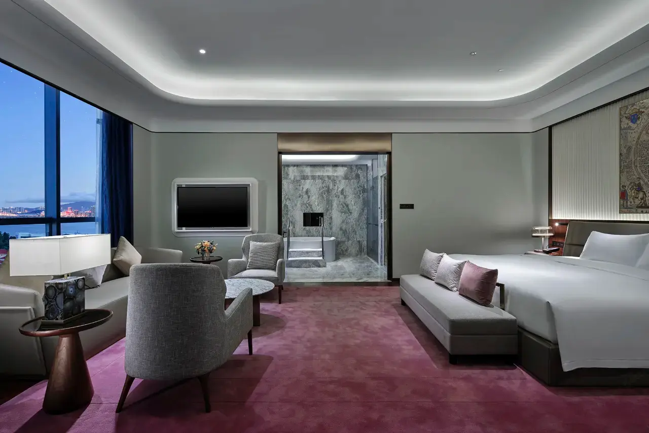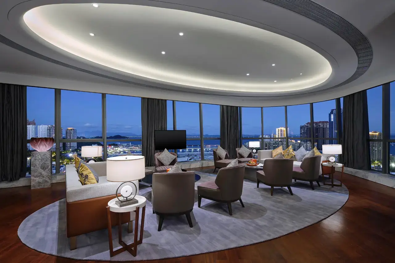 这间位于19层的总统套房面积达300平方米,专为追求极致奢华与宽敞空间的宾客而设计,坐拥令人叹为观止的壮丽景色,并提供无与伦比的私密性。无论您是商务出行还是高端度假,总统套房都将现代智能家居科技与尊贵典雅的个性化管家服务完美融合。.